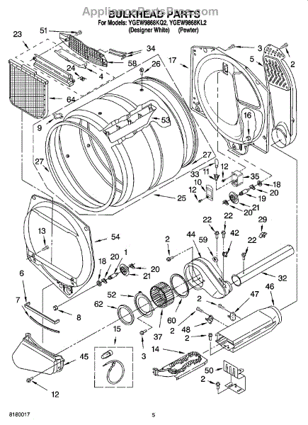 This front drum bulkhead is the stationary front panel that supports the dryer drum and seals the drum opening to maintain proper airflow and drum alignment for reliable drying performance. What it does: