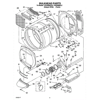 This front drum bulkhead is the stationary front panel that supports the dryer drum and seals the drum opening to maintain proper airflow and drum alignment for reliable drying performance. What it does: