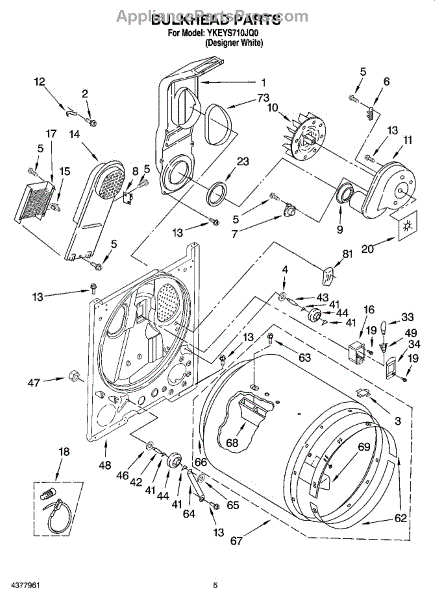 Replacement bulkhead that supports the front of the dryer drum and helps maintain correct drum alignment and airflow. Restores stable drum rotation and reduces rubbing, noise, and air leaks for more reliable drying performance. What it does: