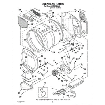 This front drum bulkhead is the stationary front panel that supports the dryer drum and seals the drum opening to maintain proper airflow and drum alignment for reliable drying performance. What it does: