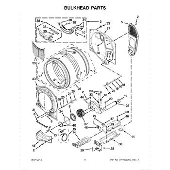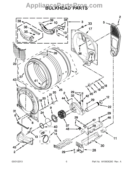 This bulkhead is the front interior panel that supports the drum and helps direct dryer airflow for efficient tumbling and exhaust. It restores proper drum alignment and airflow when the original panel is worn or damaged. What it does:
