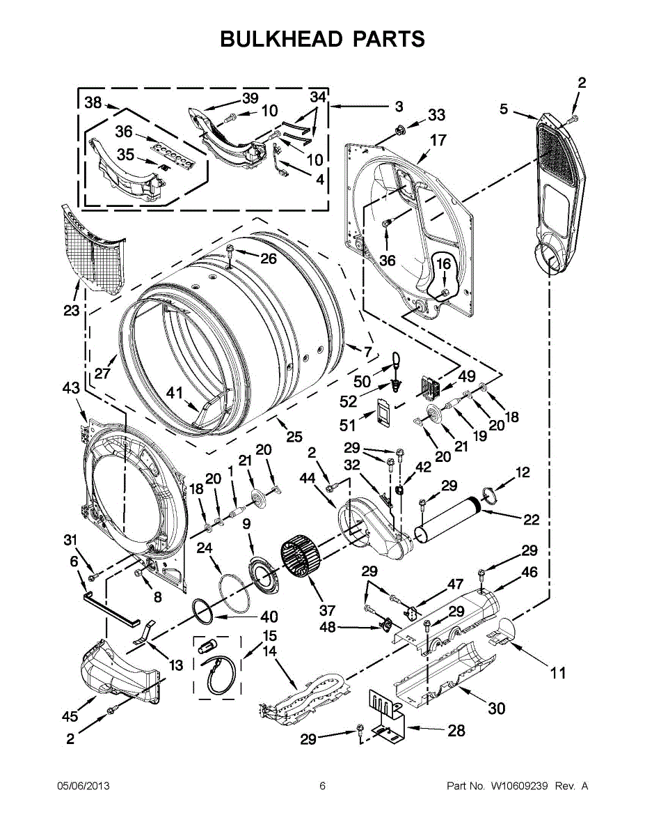 Replace your dryer's front drum bulkhead to restore proper drum alignment and eliminate rubbing, noise, and excessive play. Confirm fit with your model number.