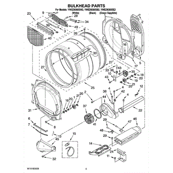 Dryer bulkhead assembly connects the drum to the blower housing. Replace if cracked, warped, or causing air leaks. Verify fit with your model number.