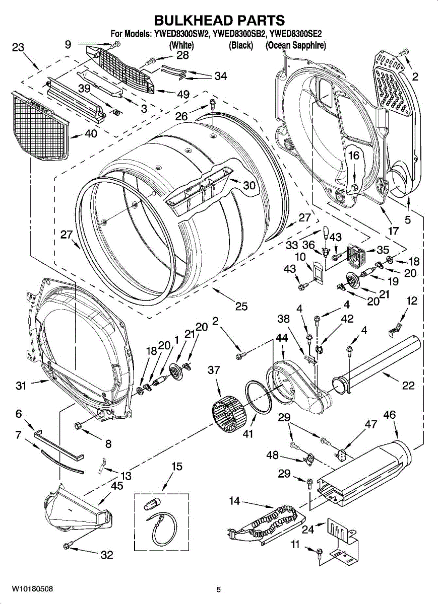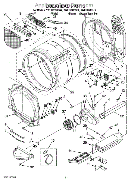 Replaces the front bulkhead section of your dryer drum. Needed when the drum front is cracked, dented, warped, or damaged, affecting tumbling performance.