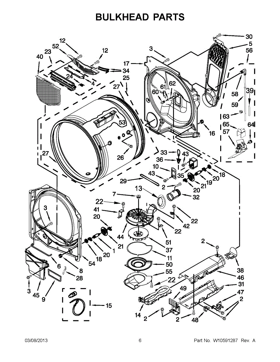Front bulkhead assembly centers your dryer drum and mounts the bearing and seal. Replace if corroded, warped, or damaged to restore alignment and reduce noise.