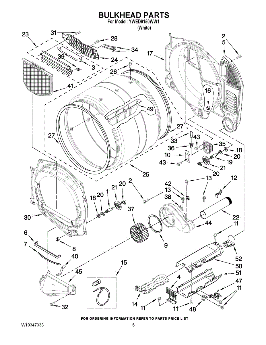 Replaces the front bulkhead section of your dryer drum. Needed when the drum front is cracked, dented, warped, or damaged, affecting tumbling performance.