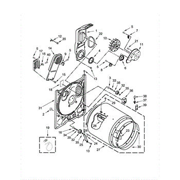 The Rear Panel is an OEM part for Whirlpool dryers. It is an outer protective panel located on the back interior of the dryer drum compartment and helps form the structural walls. The rear panel joins other interior pieces securely and assists with heat retention during the drying cycles.
