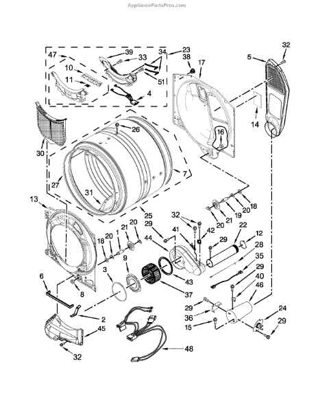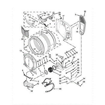 This blower housing assembly replaces the blower chamber that supports the blower wheel and routes air through the dryer for proper tumbling and drying. Restores correct airflow and helps reduce overheating or poor drying performance. What it does: