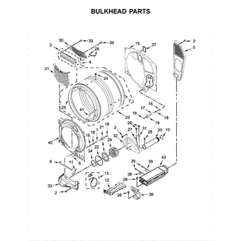 This bulkhead is the front interior panel that supports the drum and helps direct dryer airflow for efficient tumbling and exhaust. It restores proper drum alignment and airflow when the original panel is worn or damaged. What it does: