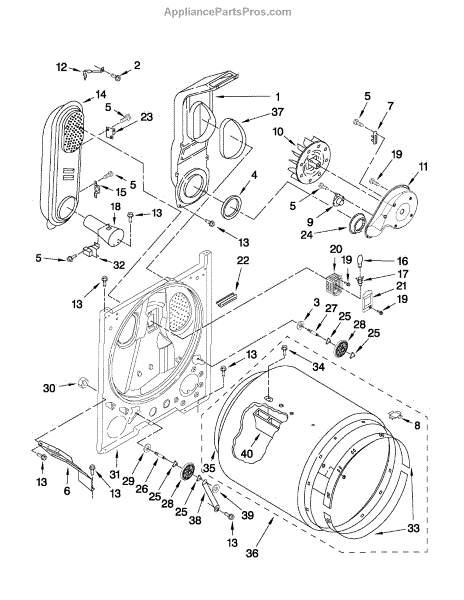 This is a drum assembly intended for use with dryers. This part can be found inside the dryer and is responsible for holding clothing while a cycle is running. It holds wet laundry while loading the appliance. Over time and with use, the drum assembly can start to wear out. This can cause the dryer to squeal, start and stop during a cycle, make buzzing noises, or seize up.If the drum assembly is damaged, it will need to be replaced. Make sure to have basic tools and a pair of work gloves ready. The dryer should be turned off and unplugged from the wall. Raise the top panel, remove the front panel, and then remove the drum. The drum support roller should be taken out and installed on the new drum. Reinstall with the new component and reassemble all parts before use.The drum assembly is made to be used with dryers and washer/dryer combos from Inglis, Estate, Admiral, Crosley, Roper, Magic Chef, Amana, KitchenAid, Maytag, Kenmore, and Whirlpool. It is a genuine OEM replacement part that is sourced directly from the manufacturer. The part is sold on an individual basis.