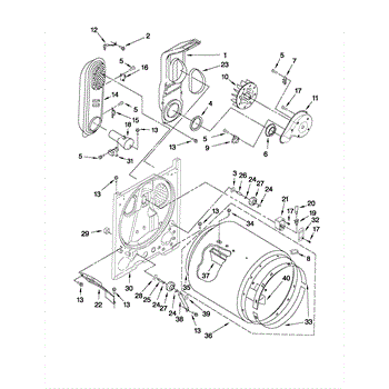 The Rear Panel is an OEM part for Whirlpool dryers. It is an outer protective panel located on the back interior of the dryer drum compartment and helps form the structural walls. The rear panel joins other interior pieces securely and assists with heat retention during the drying cycles.