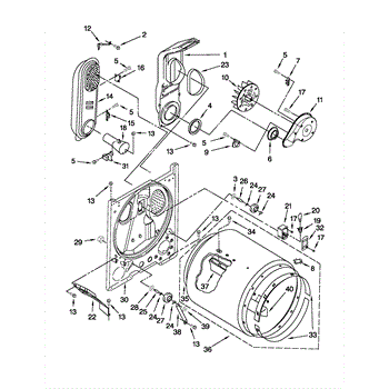 The Rear Panel is an OEM part for Whirlpool dryers. It is an outer protective panel located on the back interior of the dryer drum compartment and helps form the structural walls. The rear panel joins other interior pieces securely and assists with heat retention during the drying cycles.