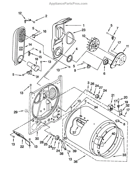 This blower housing assembly directs airflow from the dryer's drum to the exhaust, helping the appliance vent properly for efficient drying. It replaces a damaged or cracked housing to restore correct air path and reduce airflow loss. What it does: