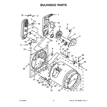 Replacement bulkhead that supports the front of the dryer drum and helps maintain correct drum alignment and airflow. Restores stable drum rotation and reduces rubbing, noise, and air leaks for more reliable drying performance. What it does: