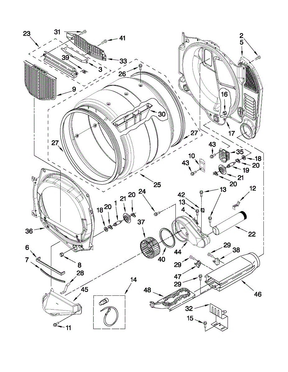 This replacement dryer drum restores the rotating drum that holds and tumbles clothes during drying, helping ensure proper airflow and even drying. It's a direct-fit exterior rotating drum used in compatible Whirlpool-family dryers. What it does: