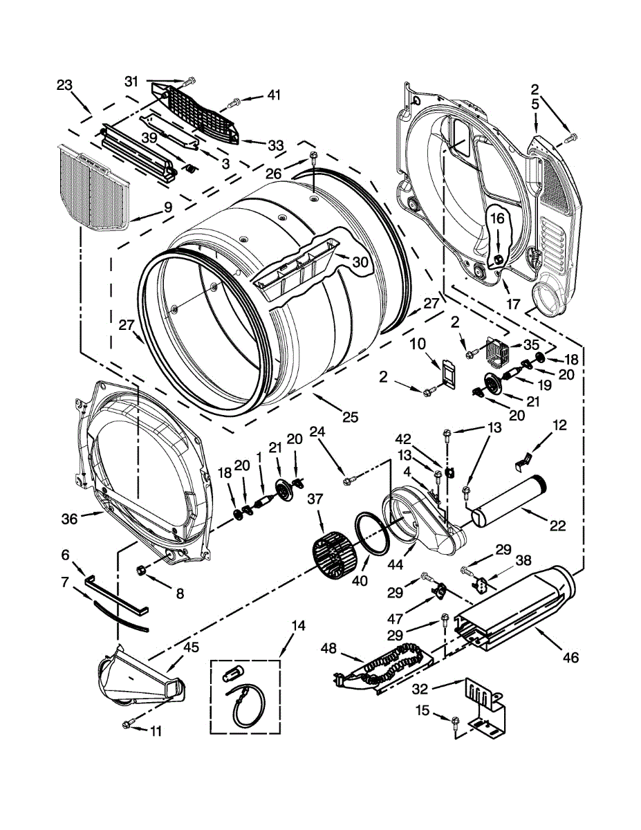 This replacement dryer drum restores the rotating drum that holds and tumbles clothes during drying, helping ensure proper airflow and even drying. It's a direct-fit exterior rotating drum used in compatible Whirlpool-family dryers. What it does: