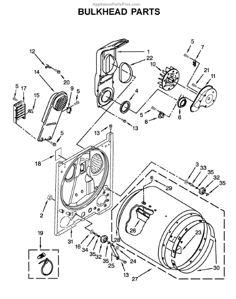 This bulkhead is the front tub housing that supports the washer drum and seals the washer cabinet to help contain water. Replaces a cracked or corroded housing to restore proper drum alignment and help prevent leaks. What it does: