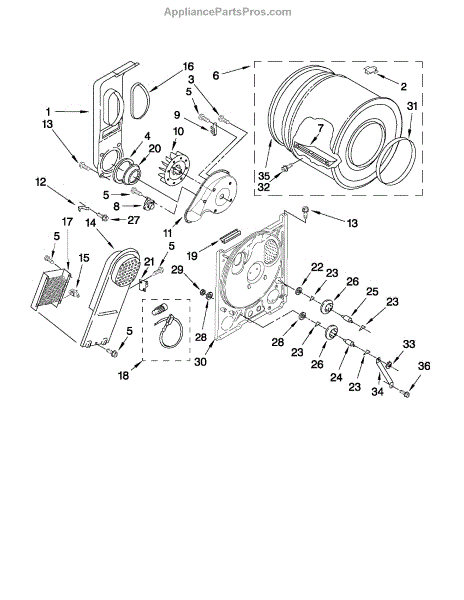 This is a drum assembly intended for use with dryers. This part can be found inside the dryer and is responsible for holding clothing while a cycle is running. It holds wet laundry while loading the appliance. Over time and with use, the drum assembly can start to wear out. This can cause the dryer to squeal, start and stop during a cycle, make buzzing noises, or seize up.If the drum assembly is damaged, it will need to be replaced. Make sure to have basic tools and a pair of work gloves ready. The dryer should be turned off and unplugged from the wall. Raise the top panel, remove the front panel, and then remove the drum. The drum support roller should be taken out and installed on the new drum. Reinstall with the new component and reassemble all parts before use.The drum assembly is made to be used with dryers and washer/dryer combos from Inglis, Estate, Admiral, Crosley, Roper, Magic Chef, Amana, KitchenAid, Maytag, Kenmore, and Whirlpool. It is a genuine OEM replacement part that is sourced directly from the manufacturer. The part is sold on an individual basis.