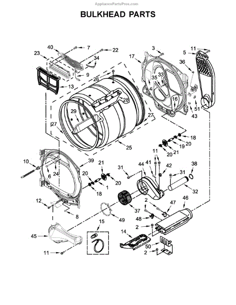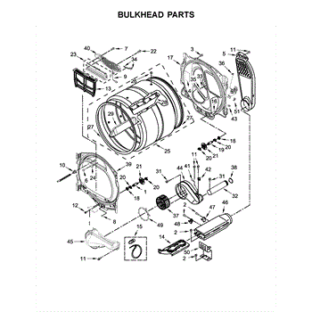 The Housing is an OEM component specifically designed for Whirlpool electric dryers. Found within the rear upper compartment, the square blower housing surrounds and supports the centrifugal fan assembly.