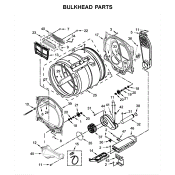 The Housing is an OEM component specifically designed for Whirlpool electric dryers. Found within the rear upper compartment, the square blower housing surrounds and supports the centrifugal fan assembly.