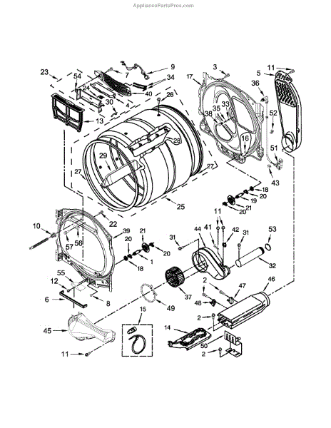 • After installation, verify the housing sits square and clear of the drum and wiring before restoring power