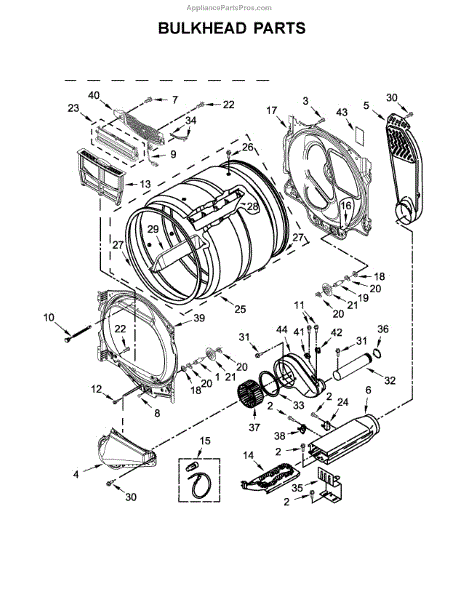 This bulkhead is the structural inner panel that supports and seals the appliance's tub and provides mounting for controls and seals. Replaces a damaged or cracked bulkhead to restore proper alignment and prevent leaks. What it does