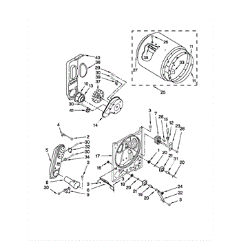 The Rear Panel is an OEM part for Whirlpool dryers. It is an outer protective panel located on the back interior of the dryer drum compartment and helps form the structural walls. The rear panel joins other interior pieces securely and assists with heat retention during the drying cycles.