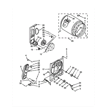 This blower housing assembly directs airflow from the dryer's drum to the exhaust, helping the appliance vent properly for efficient drying. It replaces a damaged or cracked housing to restore correct air path and reduce airflow loss. What it does: