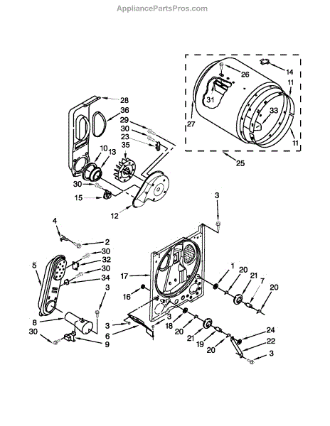 This drum is the rotating tub that holds clothes and provides the tumbling action needed for cleaning or drying. It restores the drum surface and rotation area to help the appliance tumble items properly. What it does: