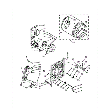 The Rear Panel is an OEM part for Whirlpool dryers. It is an outer protective panel located on the back interior of the dryer drum compartment and helps form the structural walls. The rear panel joins other interior pieces securely and assists with heat retention during the drying cycles.