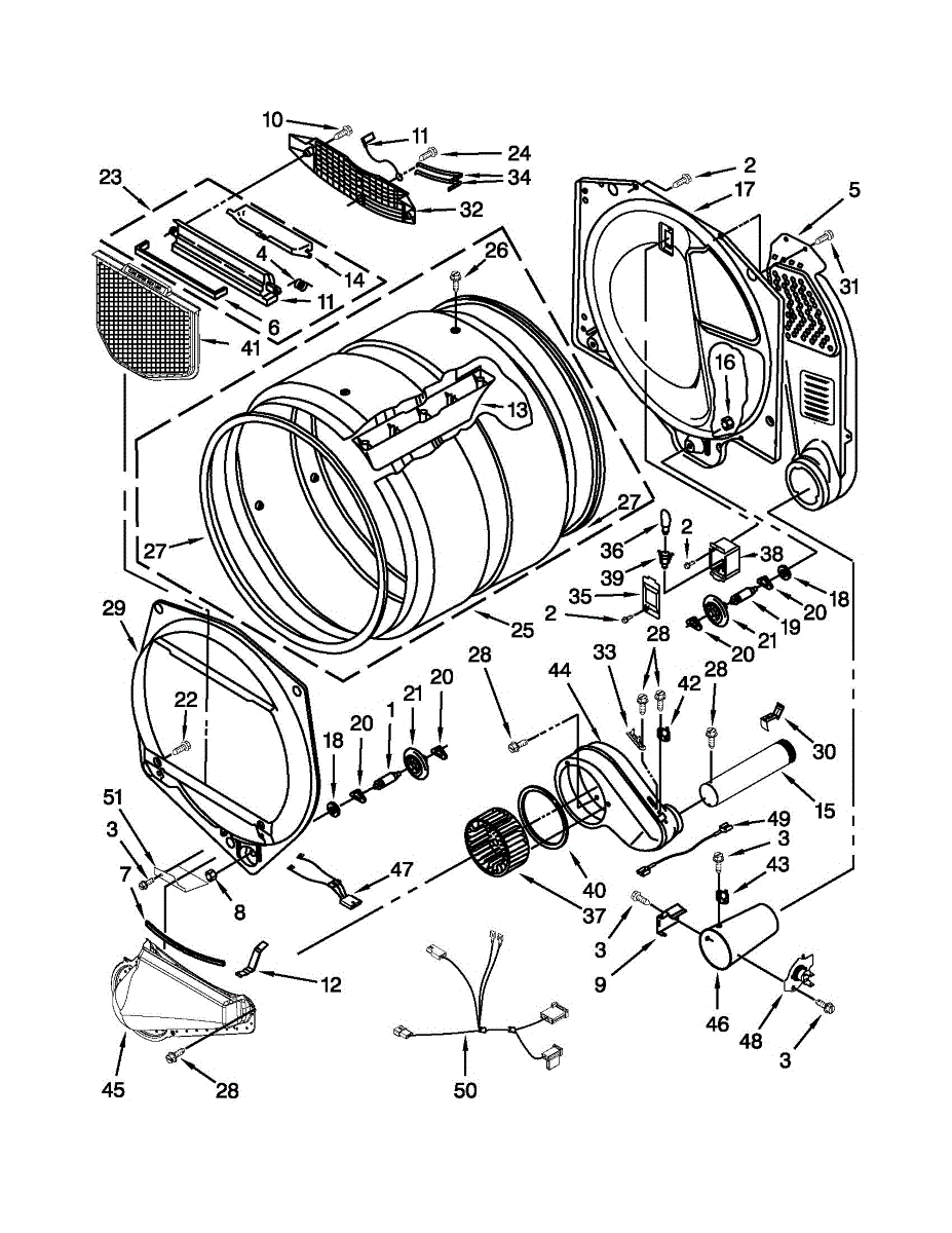 This is a drum assembly used in many home dryers. The component is located inside the appliance and is tasked with holding the clothing during a dryer cycle. It is made of durable materials but can experience wear and tear or damage that cause it to malfunction. If the drum assembly is worn or damaged, it may cause the appliance to buzz or squeal, start and stop, and seize up during use.If the drum assembly is damaged or worn, it will need to be replaced. This will require a set of tools and a pair of work gloves. Before starting the replacement process, make sure the dryer is unplugged from the wall. The dryer will need to be disassembled to access the drum assembly. The belt can be used to pull out the drum so the new component can be installed. Replace the part and reassemble the dryer. It should be plugged back in before use.This part is sold on an individual basis. It is designed to be used with several dryers created by Admiral, Amana, Maytag, Kenmore, and Whirlpool. The drum assembly is an authentic OEM replacement part that is sourced directly from the manufacturer.