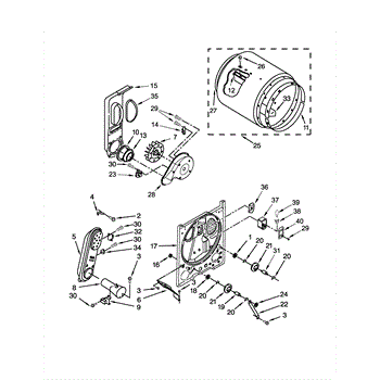 This blower housing assembly directs airflow from the dryer's drum to the exhaust, helping the appliance vent properly for efficient drying. It replaces a damaged or cracked housing to restore correct air path and reduce airflow loss. What it does: