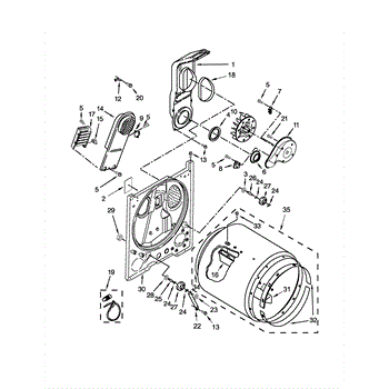 This blower housing assembly directs airflow from the dryer's drum to the exhaust, helping the appliance vent properly for efficient drying. It replaces a damaged or cracked housing to restore correct air path and reduce airflow loss. What it does: