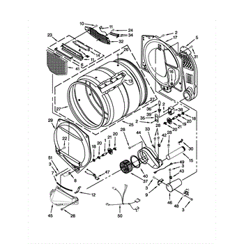 This is a drum assembly used in many home dryers. The component is located inside the appliance and is tasked with holding the clothing during a dryer cycle. It is made of durable materials but can experience wear and tear or damage that cause it to malfunction. If the drum assembly is worn or damaged, it may cause the appliance to buzz or squeal, start and stop, and seize up during use.If the drum assembly is damaged or worn, it will need to be replaced. This will require a set of tools and a pair of work gloves. Before starting the replacement process, make sure the dryer is unplugged from the wall. The dryer will need to be disassembled to access the drum assembly. The belt can be used to pull out the drum so the new component can be installed. Replace the part and reassemble the dryer. It should be plugged back in before use.This part is sold on an individual basis. It is designed to be used with several dryers created by Admiral, Amana, Maytag, Kenmore, and Whirlpool. The drum assembly is an authentic OEM replacement part that is sourced directly from the manufacturer.