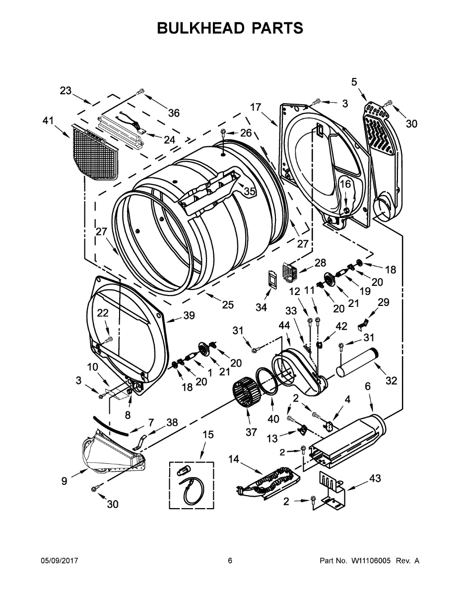 This front drum bulkhead is the stationary front panel that supports the dryer drum and seals the drum opening to maintain proper airflow and drum alignment for reliable drying performance. What it does: