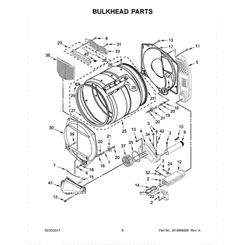 This front drum bulkhead is the stationary front panel that supports the dryer drum and seals the drum opening to maintain proper airflow and drum alignment for reliable drying performance. What it does: