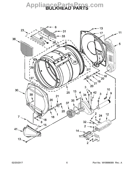 This front drum bulkhead is the stationary front panel that supports the dryer drum and seals the drum opening to maintain proper airflow and drum alignment for reliable drying performance. What it does: