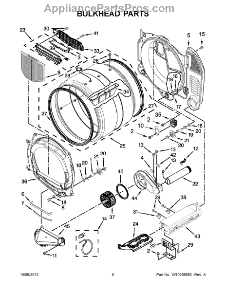 This blower housing directs dryer airflow from the drum to the exhaust for proper ventilation and consistent drying performance. It replaces a cracked or damaged housing to restore airflow and reduce noise. What it does: