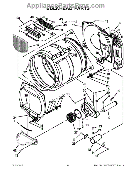 This bulkhead is the front interior panel that supports the drum and helps direct dryer airflow for efficient tumbling and exhaust. It restores proper drum alignment and airflow when the original panel is worn or damaged. What it does: