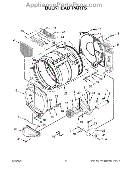 This front drum bulkhead is the stationary front panel that supports the dryer drum and seals the drum opening to maintain proper airflow and drum alignment for reliable drying performance. What it does: