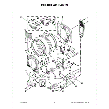 A replacement front drum bulkhead that supports the dryer drum and helps keep the front bearing and seal aligned for smooth rotation. Use this bulkhead to restore proper drum alignment and reduce rubbing, noise, and excessive front play. What it does: