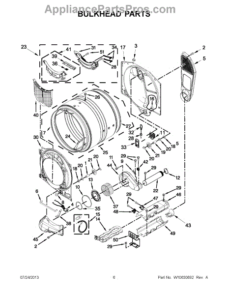 The Blower Housing Seal is an OEM part for Whirlpool dryers. This seal is strategically placed around the blower housing to prevent air leaks, which can reduce the efficiency of your dryer by allowing heated air to escape and drawing in unheated air. A proper seal ensures optimal air flow and temperature regulation within the dryer, contributing to faster drying times and reduced energy consumption.