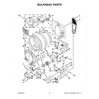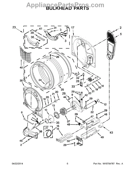 A replacement front drum bulkhead that supports the dryer drum and helps keep the front bearing and seal aligned for smooth rotation. Use this bulkhead to restore proper drum alignment and reduce rubbing, noise, and excessive front play. What it does: