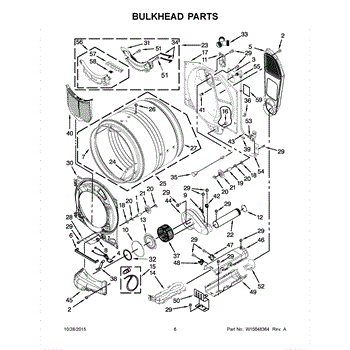 This bulkhead is the front structural panel that supports the dryer drum and seals the front of the cabinet to maintain proper airflow and drum alignment. Replacing a worn bulkhead restores stable drum rotation and prevents air leaks. What it does: