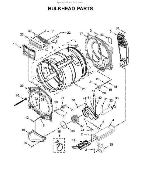 The Housing is an OEM component specifically designed for Whirlpool electric dryers. Found within the rear upper compartment, the square blower housing surrounds and supports the centrifugal fan assembly.