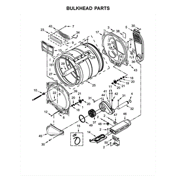 The Housing is an OEM component specifically designed for Whirlpool electric dryers. Found within the rear upper compartment, the square blower housing surrounds and supports the centrifugal fan assembly.