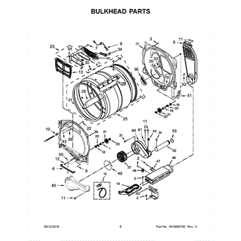 The Housing is an OEM component specifically designed for Whirlpool electric dryers. Found within the rear upper compartment, the square blower housing surrounds and supports the centrifugal fan assembly.