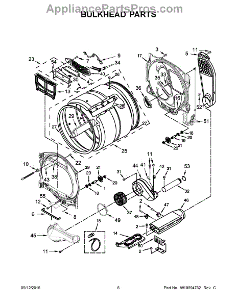 This bulkhead is the structural inner panel that supports and seals the appliance's tub and provides mounting for controls and seals. Replaces a damaged or cracked bulkhead to restore proper alignment and prevent leaks. What it does