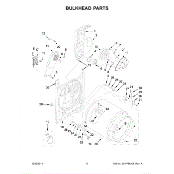 The Rear Panel is an OEM part for Whirlpool dryers. It is an outer protective panel located on the back interior of the dryer drum compartment and helps form the structural walls. The rear panel joins other interior pieces securely and assists with heat retention during the drying cycles.