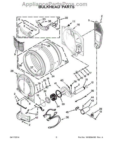 This bulkhead is the front interior panel that supports the drum and helps direct dryer airflow for efficient tumbling and exhaust. It restores proper drum alignment and airflow when the original panel is worn or damaged. What it does: